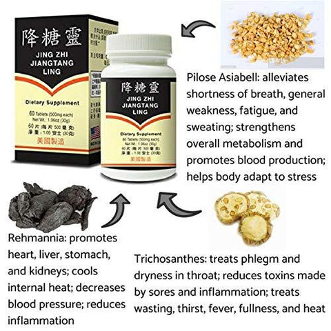 Jing Zhi Jiang Tang Ling helps supplement the body's fluid-production system as well as maintain healthy sugar levels and circulation. Greatly supplementing original qi, engendering liquid and wasting thirst, boosting the liver and harmonizing the stomach, increasing the secretion of the body fluid, reducing the contents of the blood sugar and urine sugar.